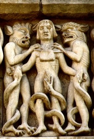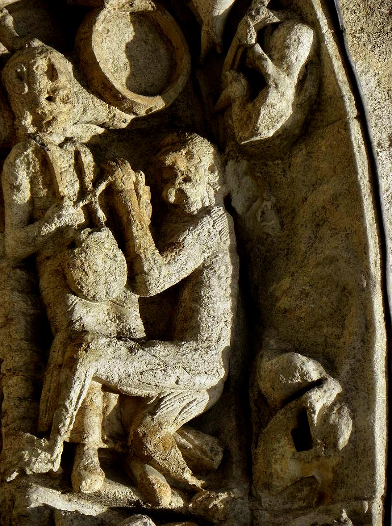On an archivolt of the basilica of the Holy Cross in Bordeaux the hideously-evil
