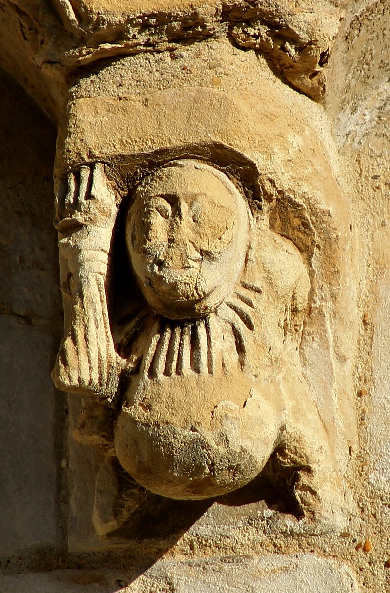 A corbel at Mailhat (Puy-de-Dôme) shows a person with a moneybag
