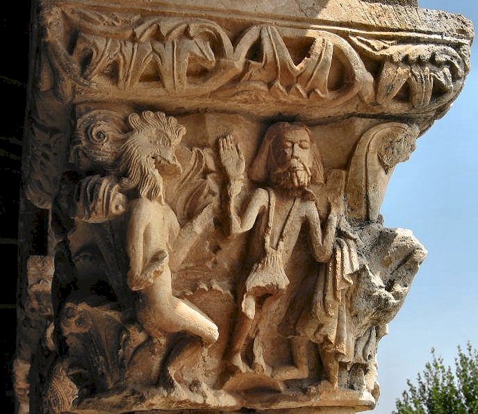 on the left side of the famous portal at Moissac (Tarn-et-Garonne).