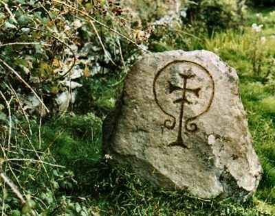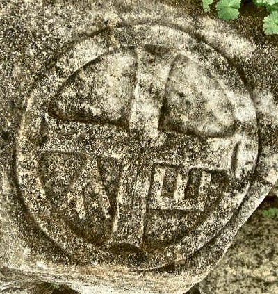 Sous la croix-en-cercle deux enjolivures qui peuvent réprésenter
