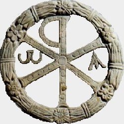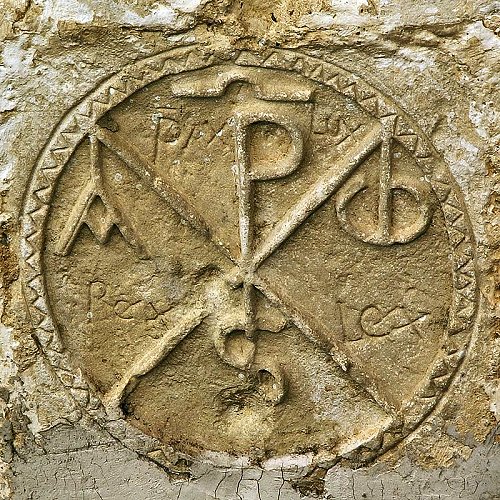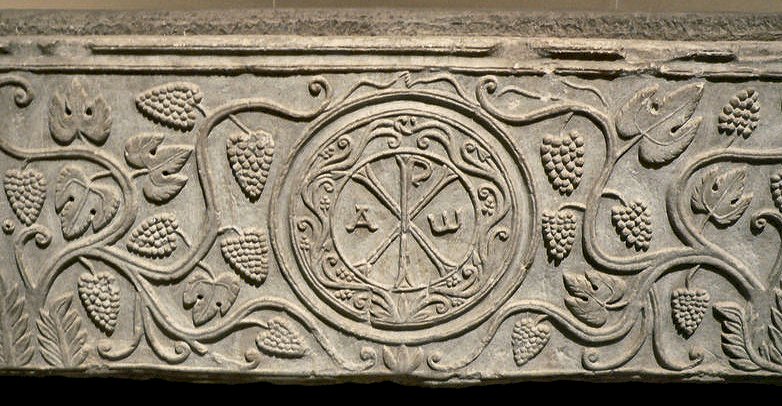 décoré d'un Chrisme, alpha & oméga, et de pampres