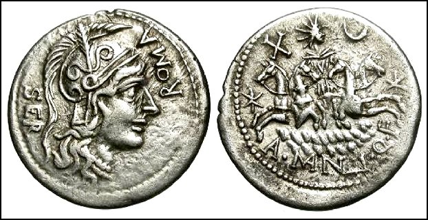A noter aussi cette pièce de monnaie romaine-républicaine