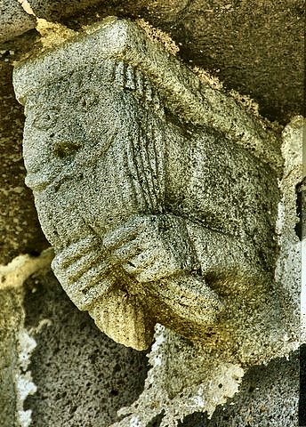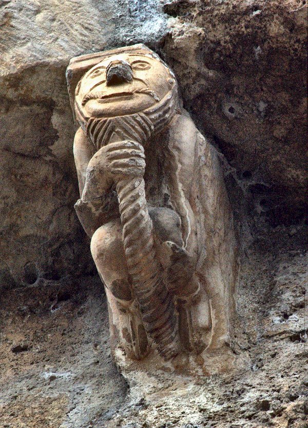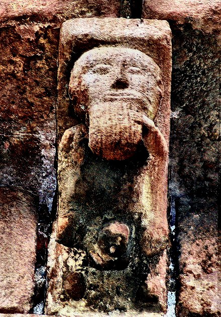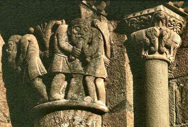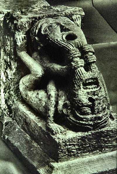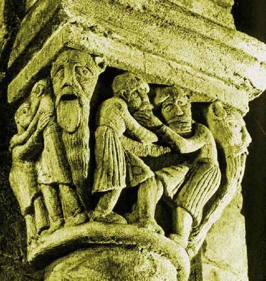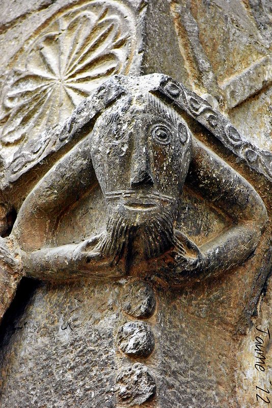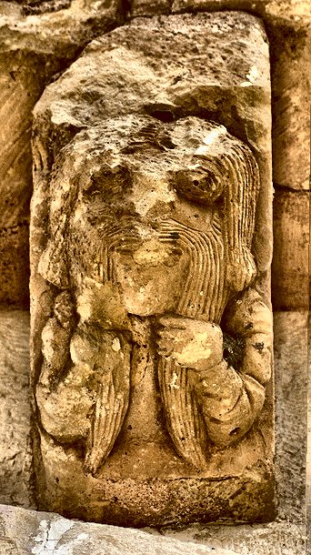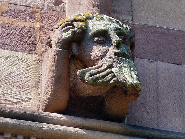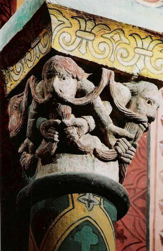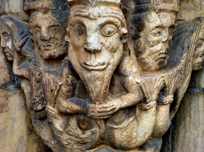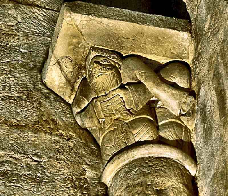 This one of several beard-puller capitals at Stavanger (Norway) is being