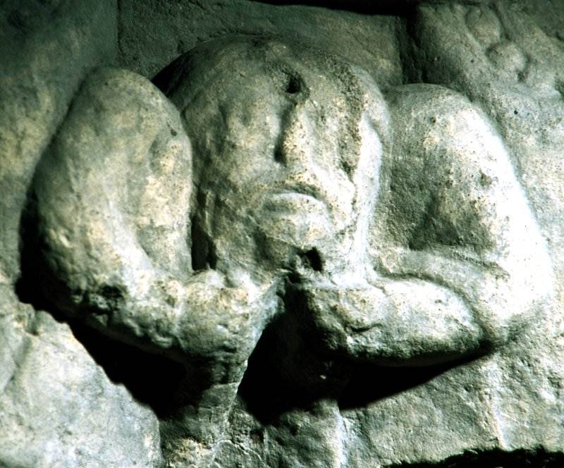 Classical-looking, beard-pulling centaurs at Charlieu (Rhône-Alpes)
