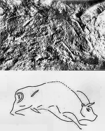Three of the five engravings in the palæolithic cave - close to the river Aveyron - which may have