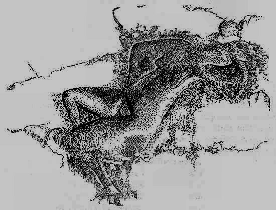 Trois des cinq bas-reliefs de la grotte paléolithique riveraine, qui, peut-être, a abrité pour un petit temps, les victimes
