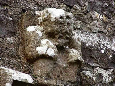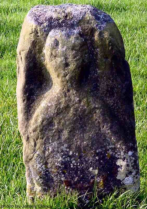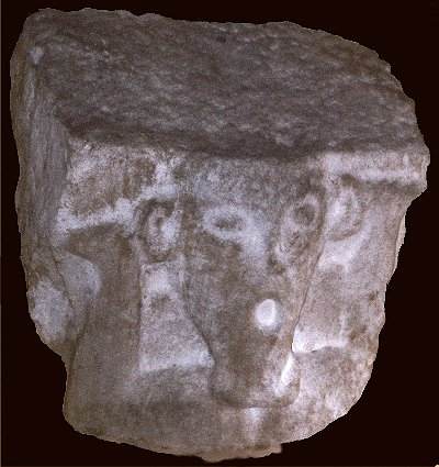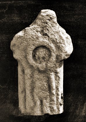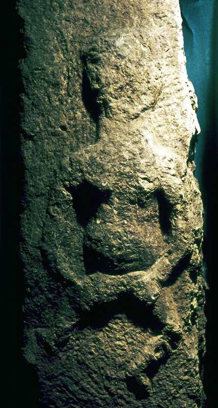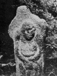 to carvings from Rahan and at Cloghan Castle. The head has no ears and