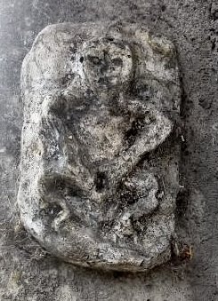 weathered, clothed figure, recently dug up from the graveyard, has similarities