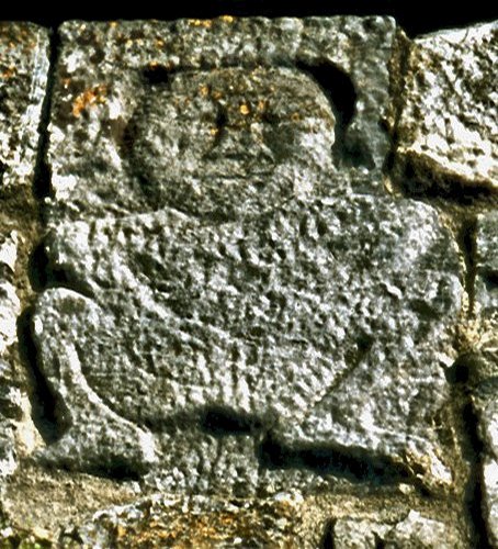 almost effaced by hacking, on wall, near entrance to the 15th century
