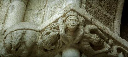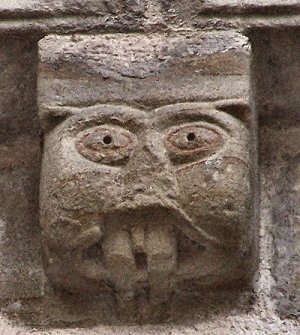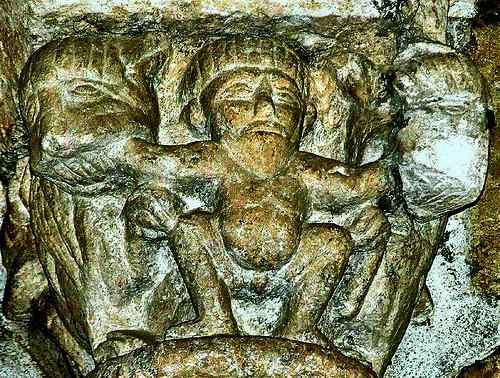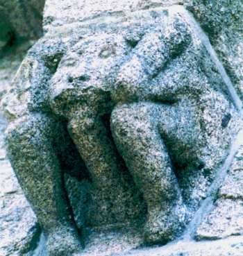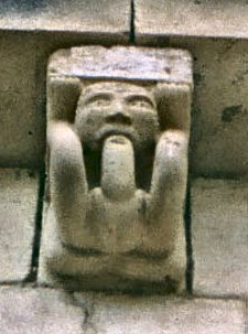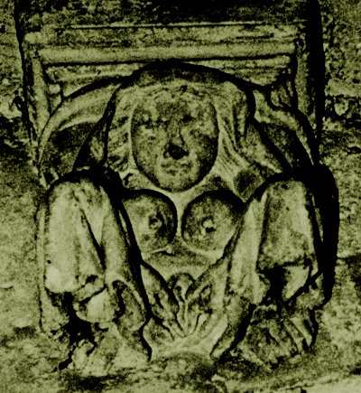 head-dressed vulva-pulling female inside one of the six Romanesque