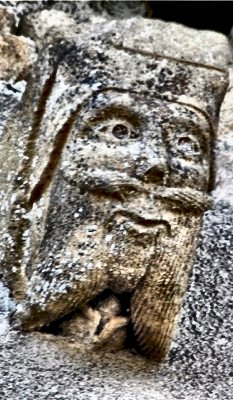 Note the drilled eyes on this corbel, which are a late 12th-century feature, and the rat-ears.