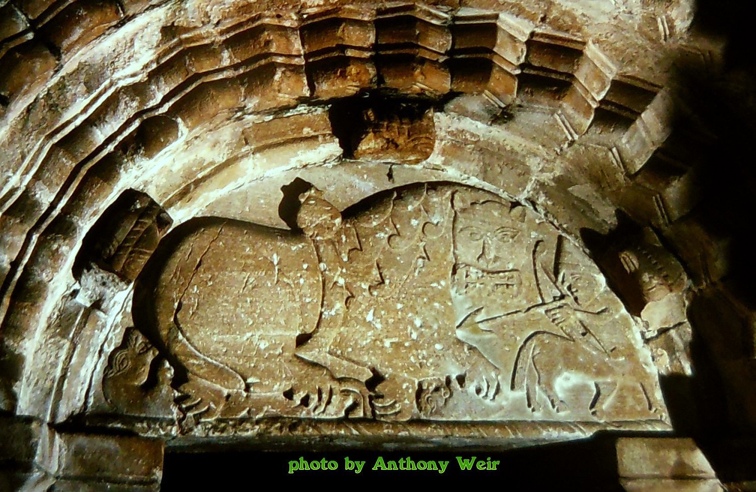Satan (the Beast) is threatened by a Christian centaur-sagittarius