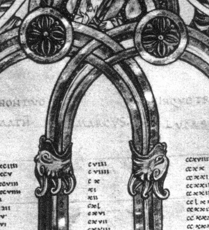 Canon-tables (concordance) in a tenth-century Anglo-Saxon Manuscript (detail)