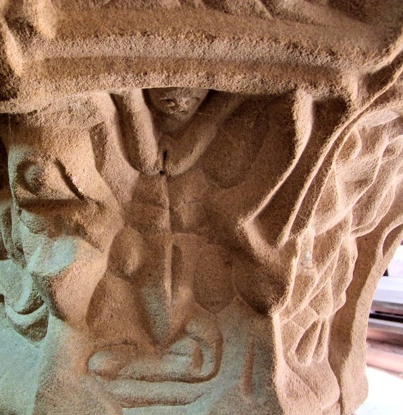 A bizarre, reputedly-16th-century, quasi-Romanesque font,