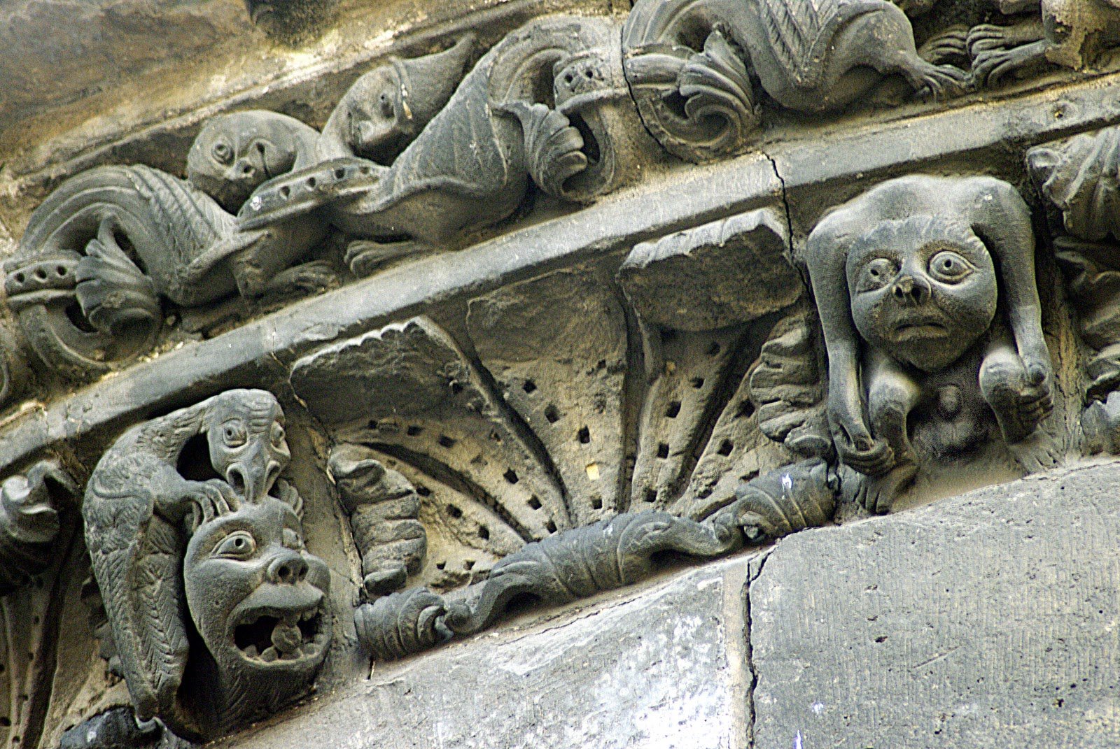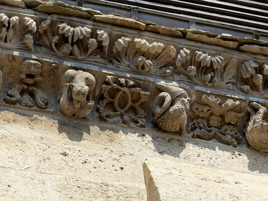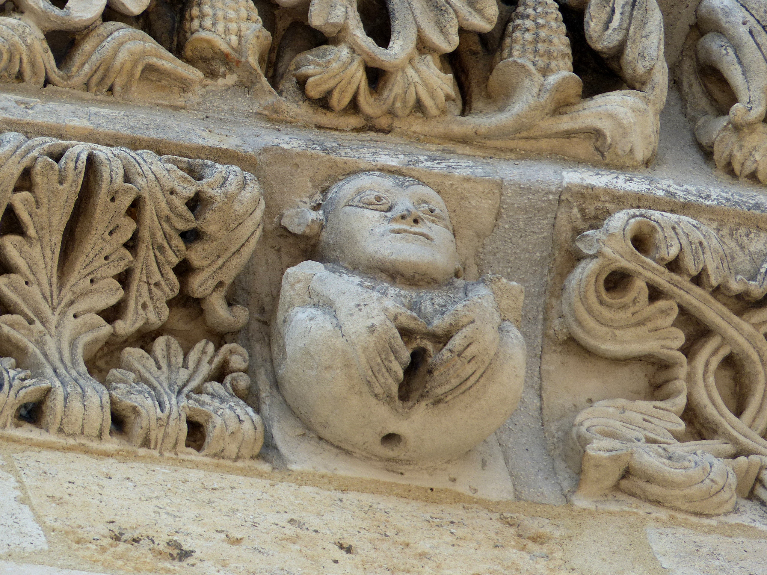 The exhibitionist on this exuberant, almost baroque, late-Romanesque frieze