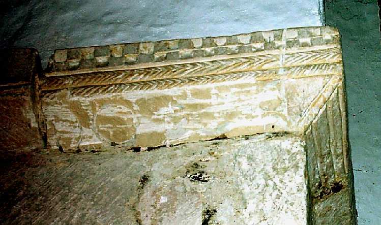 Set on its side on a high impost of the twelfth-century chancel arch of