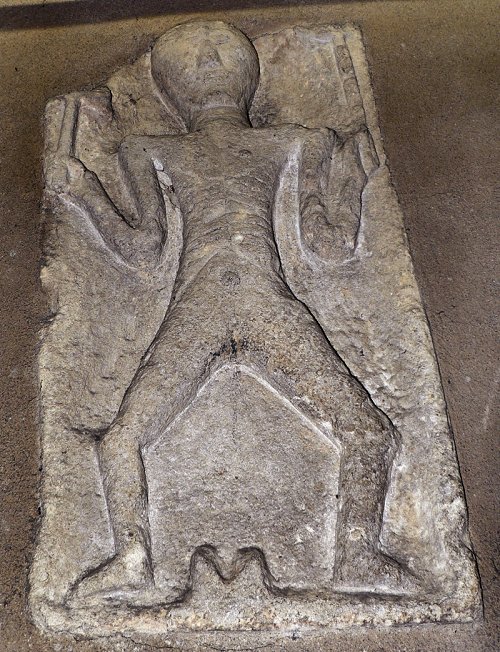 perhaps because of the lack of breasts and the weapons (?) it is wielding.