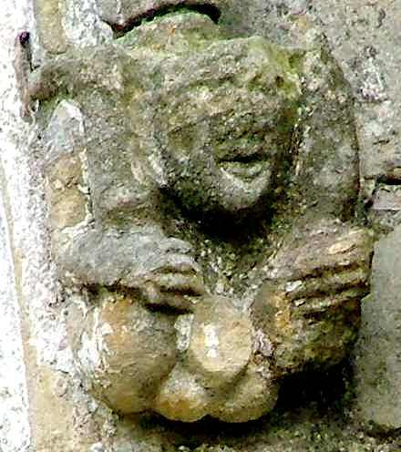 This classic feet-to-ears acrobat is a window-stop on the N side of the church.