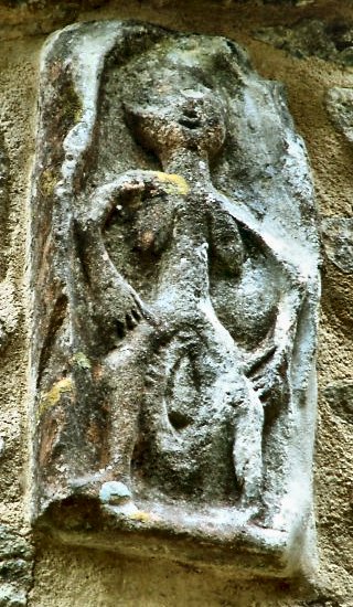 sheela-na-gig, with typical hair - but (again) with smiling mouth.