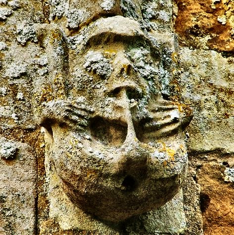 Note the beetling brows which are a feature of 14th-15th century grotesques.