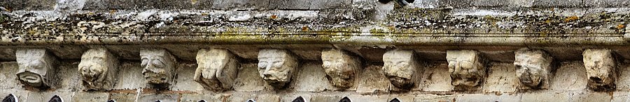Three casts of corbels from the original fine, late-Romanesque cathedral,