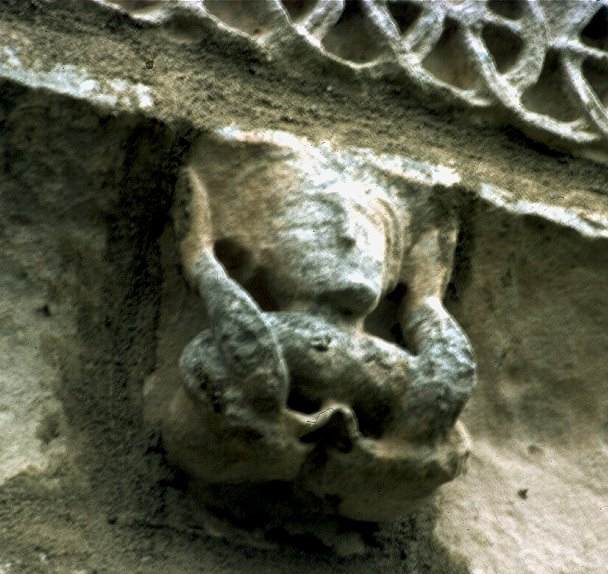 This female acrobat foreshadows the sheela-na-gigs in the insertion