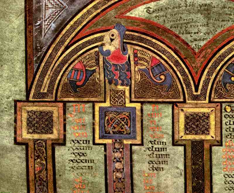 this detail from a page of Canon Tables is as much a forerunner of French beak-head
