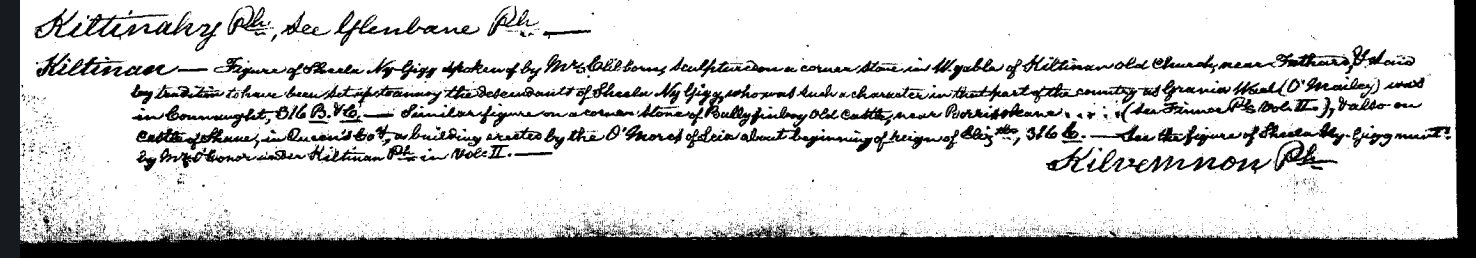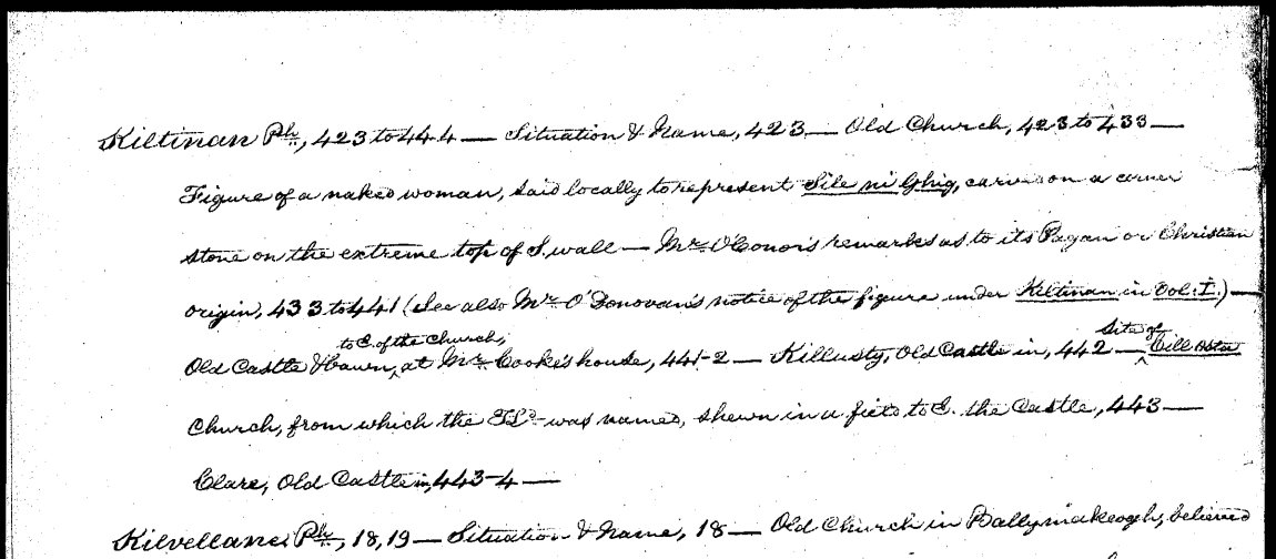 see the figure of sheela-ny-gigg mentioned by Mr O'Conor under Kiltinan Pk in
