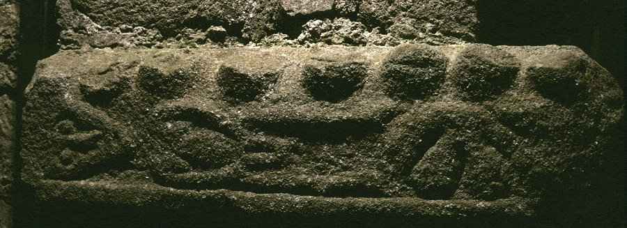 The head is reminiscent of the figures on the 10th century cross at Moone