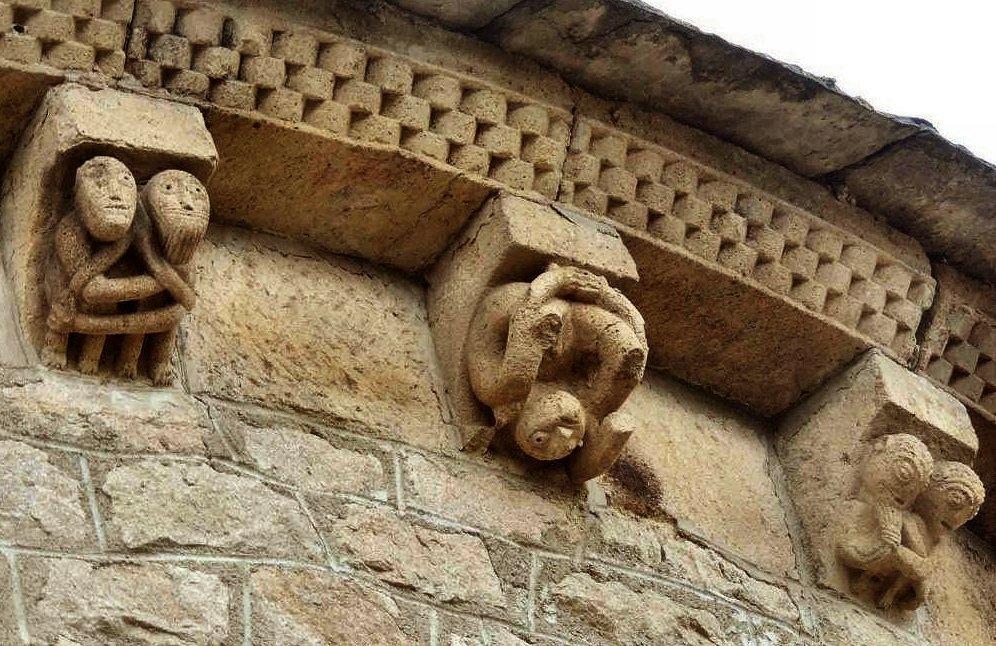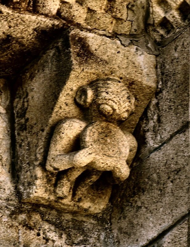 On the S side of the S absidiole: a rudimentary female exhibitionist on