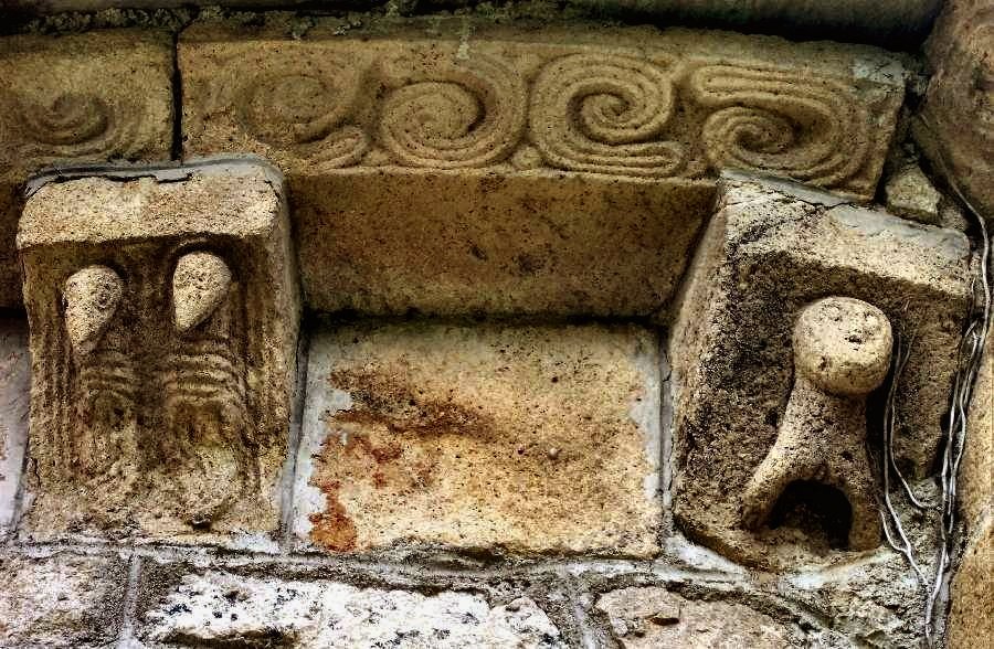 On the N side of the chevet is this rudimentary beard-puller,