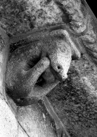 Corbel of a beast (somewhere between a bear and a dog) in an Ouroboros-position