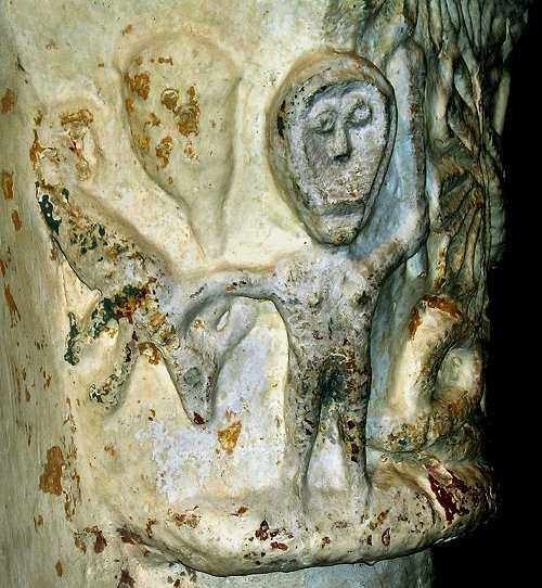 The wonderfully-primitive capitals of this little church feature, amongst