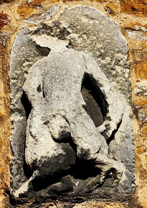 This anal exhibitionist can be seen on the 14th century church porch at Oakham.