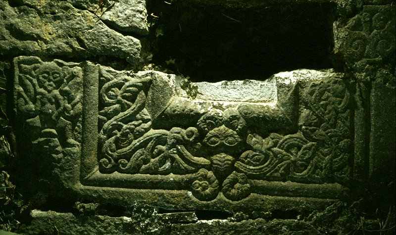A detail of the twelfth-century window-sill in the church of Rath Blathmaic.