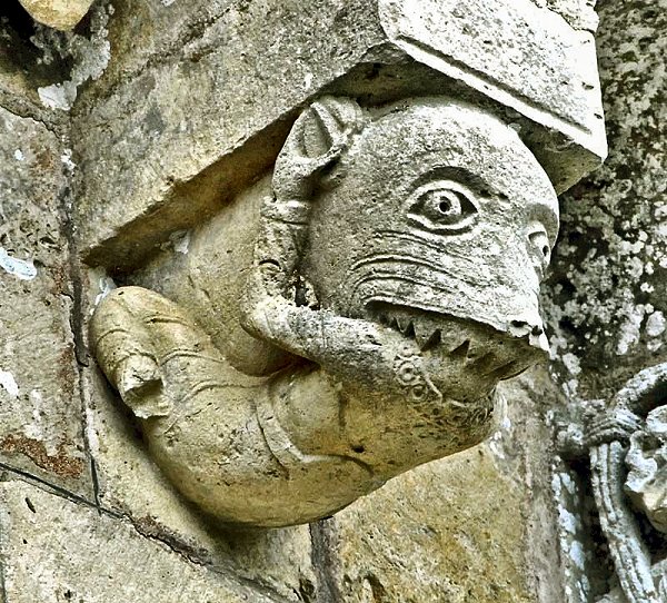 Compare with a male being similarly swallowed inside the abbey church at Figeac (Lot).