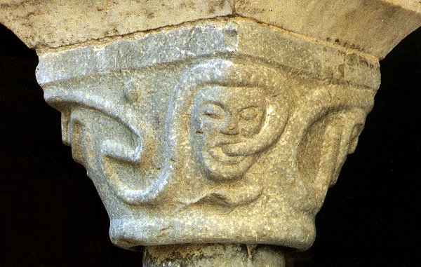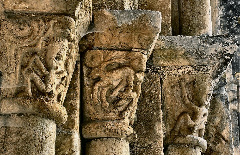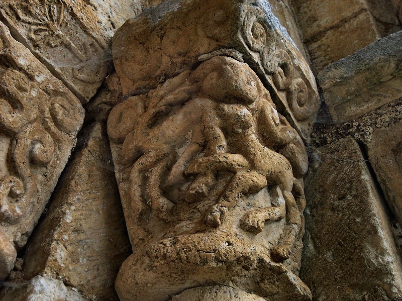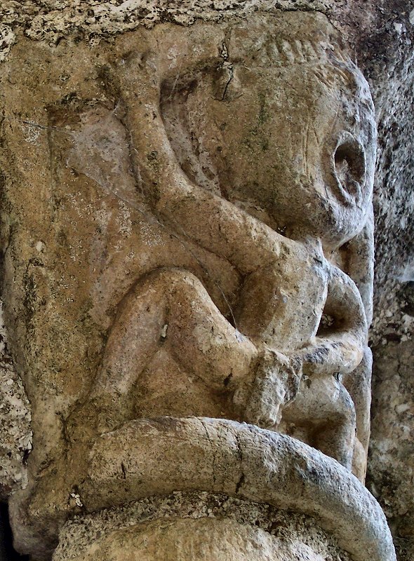 Compare the male with another semi-atlas tongue-protruding figure at La Godivelle (Puy-de-Dôme)...