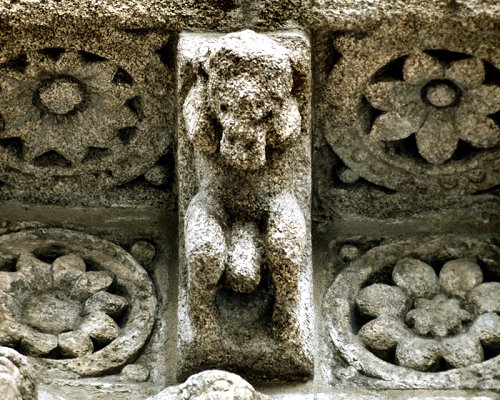 This tongue-sticking, porcine megaphallic male exhibitionist on the corbel-table