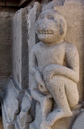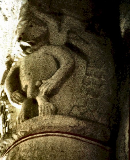 A masturbating monkey on the Durga Temple at Banaras (Benares, Varanasi), India. 18th century.
