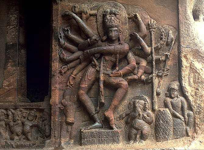 Sculpture of the dancing Shiva inside the famous cave-temple.