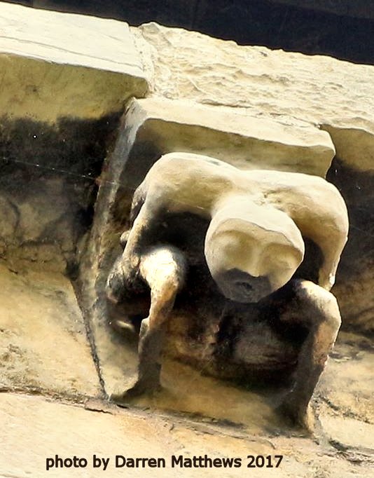 Much more easy to see on the minster is a pair of heads, one of which is a tongue-sticker.
